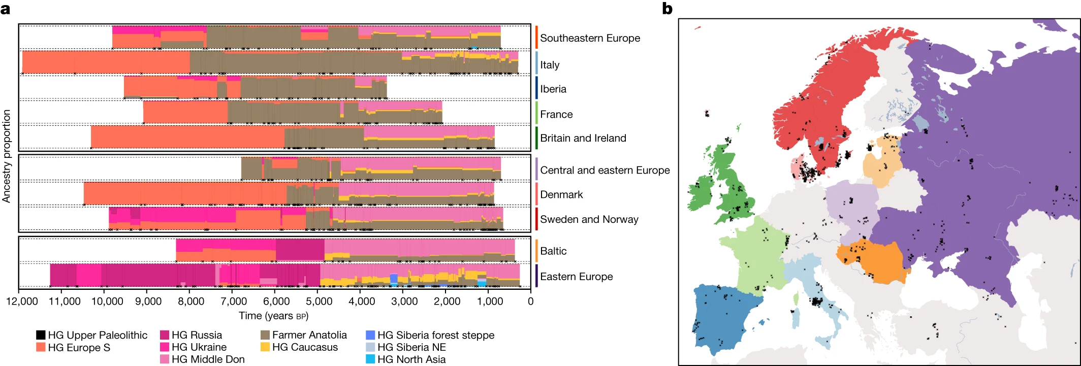 - Allentoft, M. E. et al. (2024). Population genomics of post-glacial western Eurasia. Nature, 625(7994), 301‑311.
